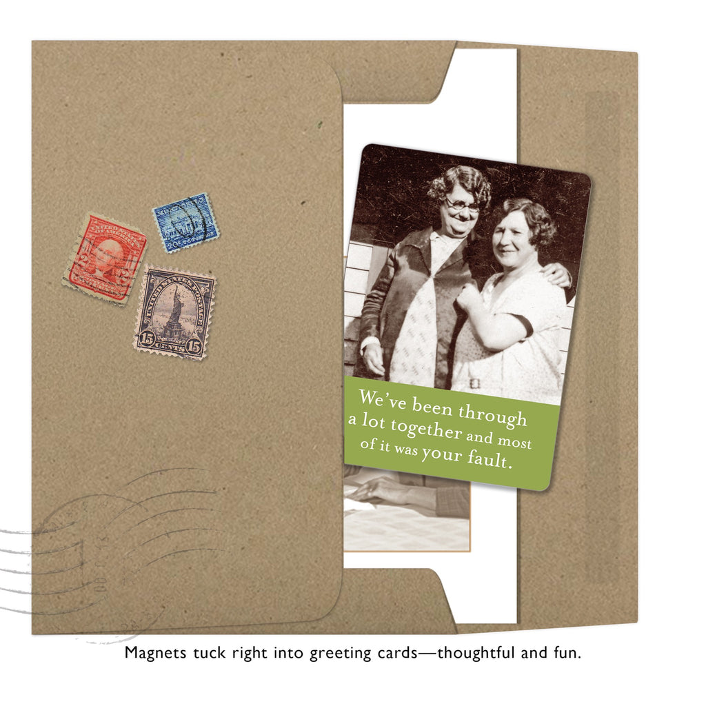 Vintage photography and plenty of personality – these slim, sturdy magnets add charm to fridges, file cabinets, and lockers, and slip easily into a card for a sweet surprise. Individually wrapped with a top tag for easy gifting.