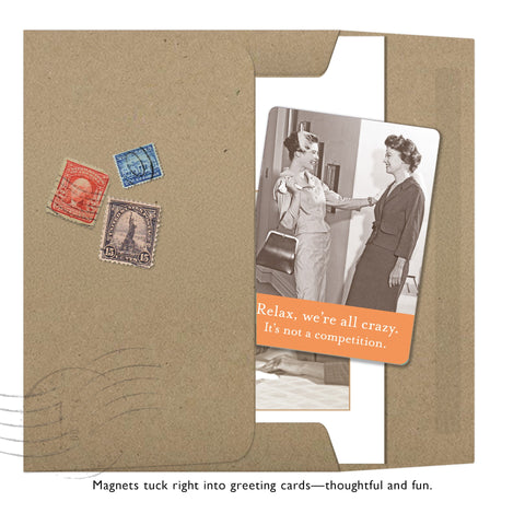 Vintage photography and plenty of personality – these slim, sturdy magnets add charm to fridges, file cabinets, and lockers, and slip easily into a card for a sweet surprise. Individually wrapped with a top tag for easy gifting.